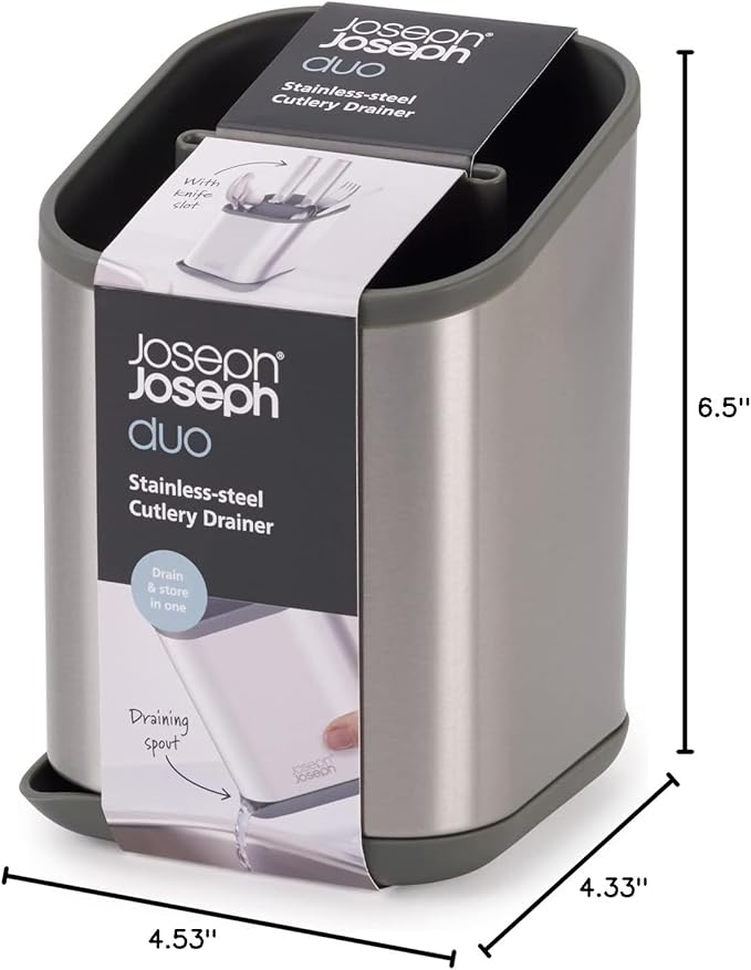 Joseph Joseph Duo Stainless Steel Silverware Flatware Drainer, Kitchen Utensil Organizer