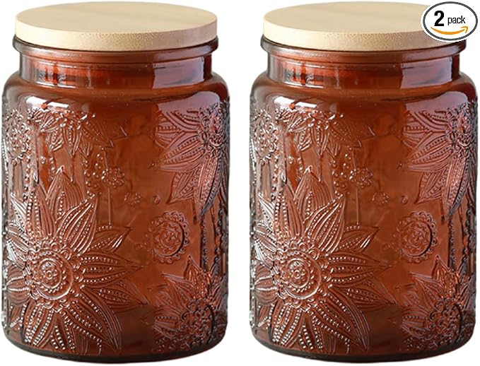 - Vintage Embossed Jar: The appearance of the vintage glass jar adopts the design concept of sunflower embossed, exquisite and beautiful, both decorative and practical performance, suitable as Christmas festival decorative glass jar for your family and friends