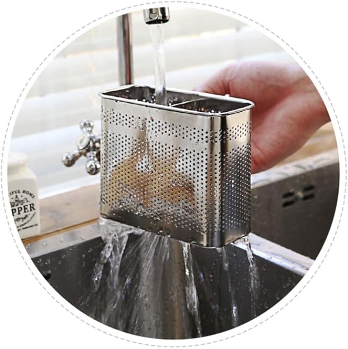 - Convenient use - This sink rack allows you to dry any kitchen utensils, dishes and silverware. With an attractive, stylish design, this stainless-steel dish drainer is a perfect addition to your kitchen. It features a drain hole that is round shaped and evenly distributed around the basket. This will allow efficient drying of utensils. Sturdy hooks are designed to attach easily to most wired dish drainers. Excellent quality and easy to clean.