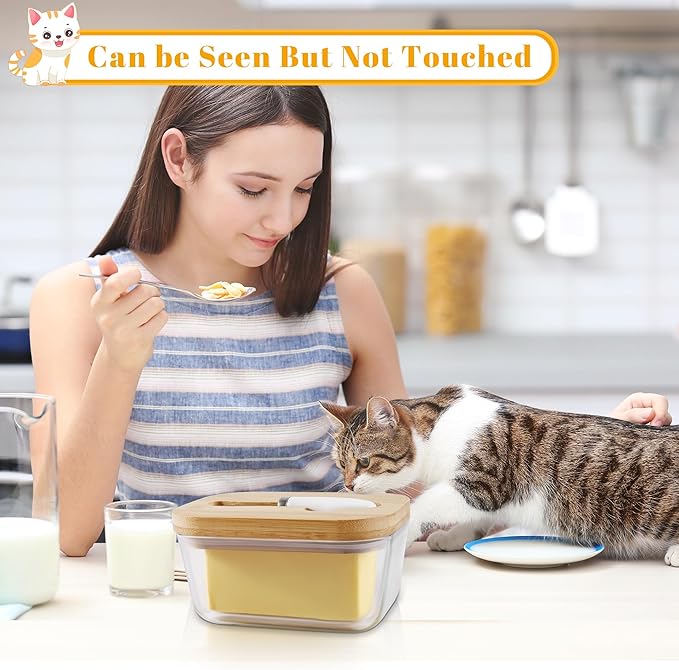 - UPDATED DESIGN: Made of natural sustainable bamboo wood, the bamboo cover can be used as a cutting board for butter, and we have redesigned grooves at the bottom to prevent butter from slipping off and contaminating the table during the cutting process.