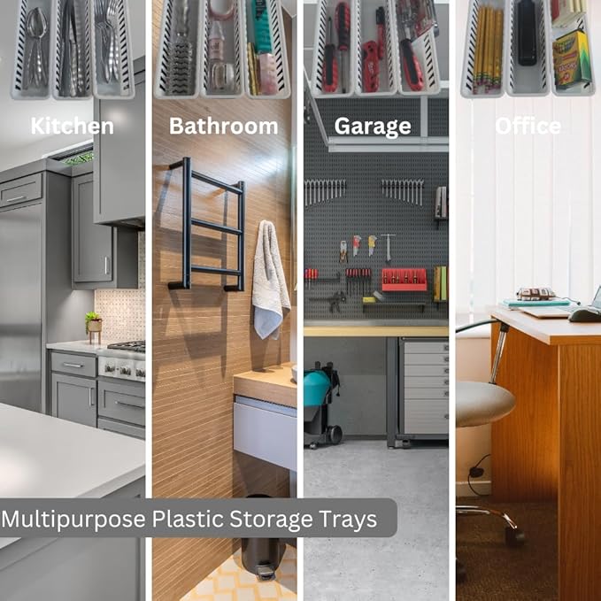 - Drawer storage baskets and trays are versatile organizers that can be used in the kitchen, bathroom, garage, and office to maximize space and keep items neatly organized.