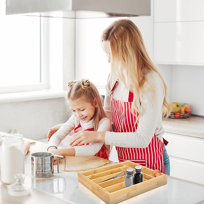 - Feel the Touch of Nature - Our kitchen drawer organizers is crafted from 100% premium bamboo, ensure quality and durability. Handmade with care, each organizer promises a smooth, burr-free surface, offering a safe and elegant storage solution