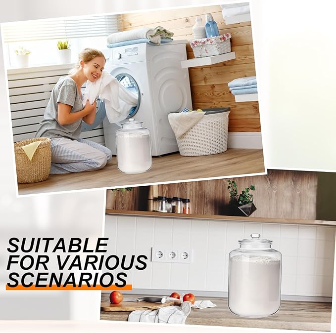 - Multi Functional Usage: with a capacity of approximately 4 gallons, the clear jars with lids are large enough to store a variety of items such as cookies, snacks, candy, grains, and more; The jars come with 3 stickers for labeling, making them easy to identify and organize the contents