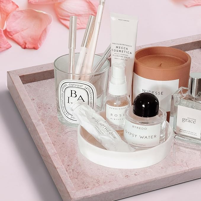 - 【NATURAL MARBLE】- Material: Made of pure natural rose cream marble. The veins of each marble tray are unique pink. Non-resin, non-ceramic.