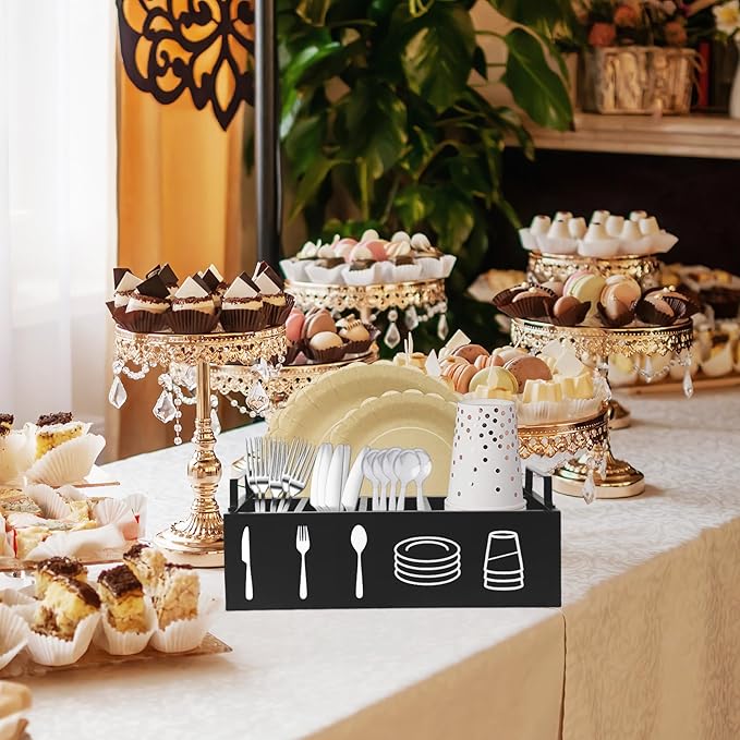 - 【Stay Away From Clutter 】- Our utensil organizer for countertop has 5 compartments designed for knives, forks, spoons, napkins. The paper cup box can hold all kinds of cups you need.The organizer can also be used as a small assistant at the coffee station, and the large space can store disposable paper cups, straws, coffee balls, sugar packets, etc.