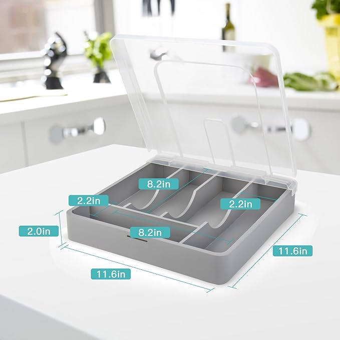 - Dusty-Proof: Tableware organizer with lid is dust-proof to keep your Utensil clean while put them in the countertop and drawer. No need to clean again when you use Silverware.