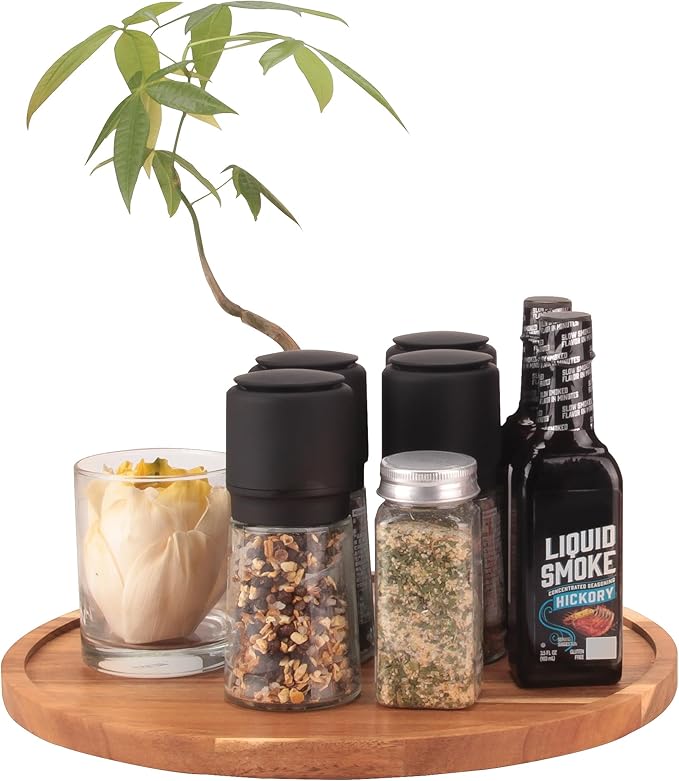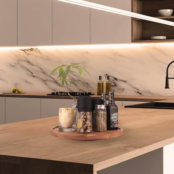 9 inch Wooden Lazy Susan Turntable, Acacia Wood Spinning Organizer for Dining Table, Cabinet, Fridge, countertop, Pantry
