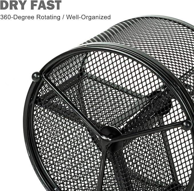 - Perfect Rotating Vertical Utensil Stand: Utensil holder is made of metal Steel mesh with drainage holes, providing ample breathing space for your silverware caddy, 360-degree rotating countertop silverware rack makes it easier to use the utensil caddy, allowing people to easily take utensils off from the silverware caddy