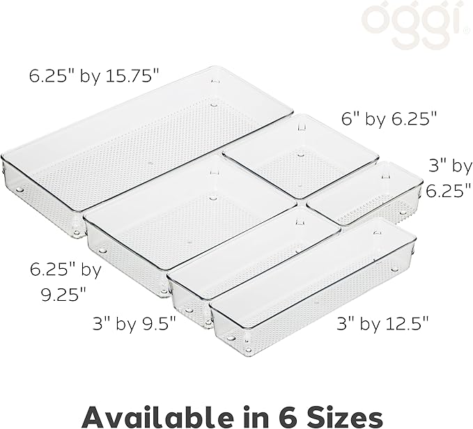 Oggi Clear Drawer Organizer - 3" X 9" - Ideal for Organizing Kitchen Drawers, Office, Desk, Silverware, Kitchen Utensils, Cosmetics and Bathrooms (Pack of 2)