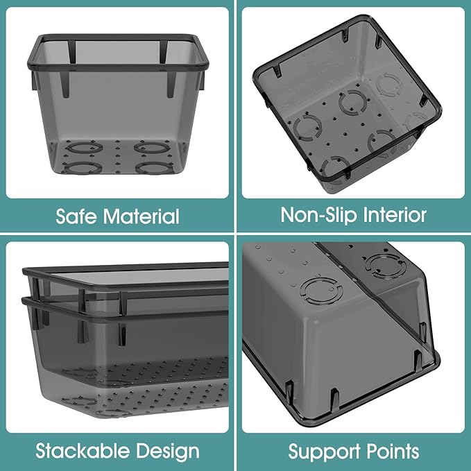 - Durable and Non-Slip: The plastic has 3-5 times the impact strength of other materials and is robust and durable. The bottom of the storage organizers has a non-slip design to prevent the tray from moving around when the drawer is opened and closed.
