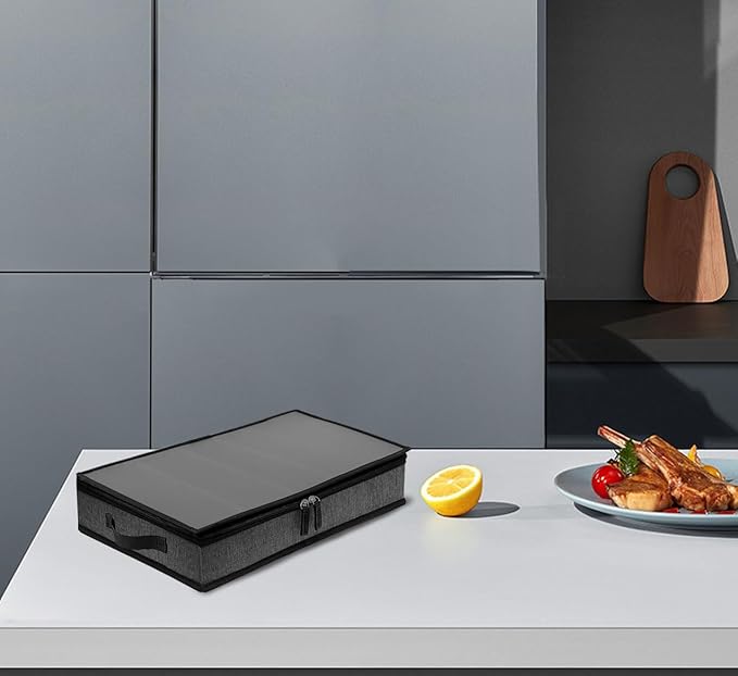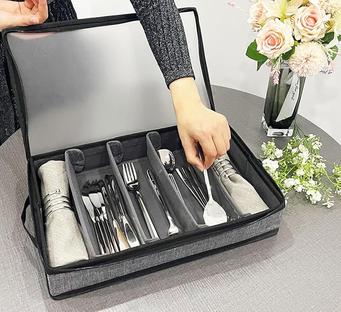 - Classic Design and Convenient Label Window:The gray body and black edging make the Flatware Storage Case very simple and exquisite. It includes a holder to easily identify contents.