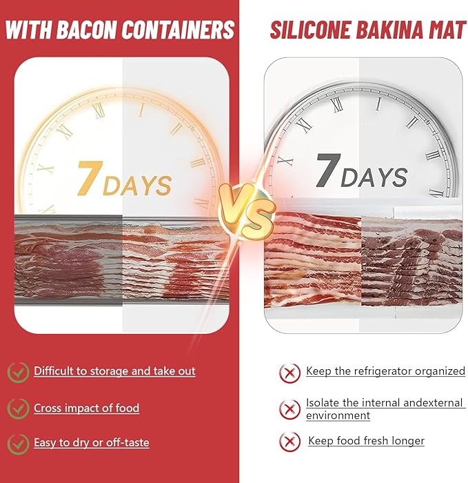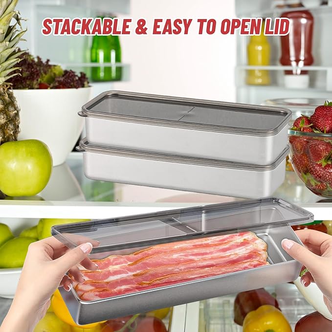 - 【Refrigerator Bacon Container Box】Our refrigerator organisers are designed for one pound of bacon and are shaped perfectly for storing opened bags. This saves space in your fridge and makes it easy to access your bacon multiple times.