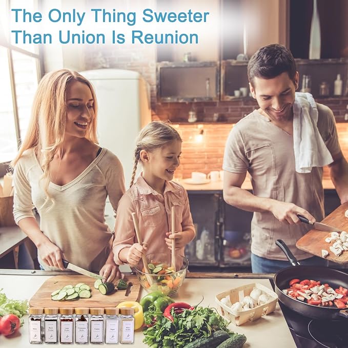 - 【High Quality Glass Spice Jars】:These spice jars are made of thick glass with a square shape of high-transparency visibility,so you can see the contents in the jar directly with what’s inside and how much left.the raw material of the seasoning jar is food grade glass,so it's healthy for food ingredients.size of each glass spice jar:approx.1.65 inches wide and 4.33 inches high(including bamboo lid),bamboo lids rotate through threads to tightly integrated with the glass spice jars.