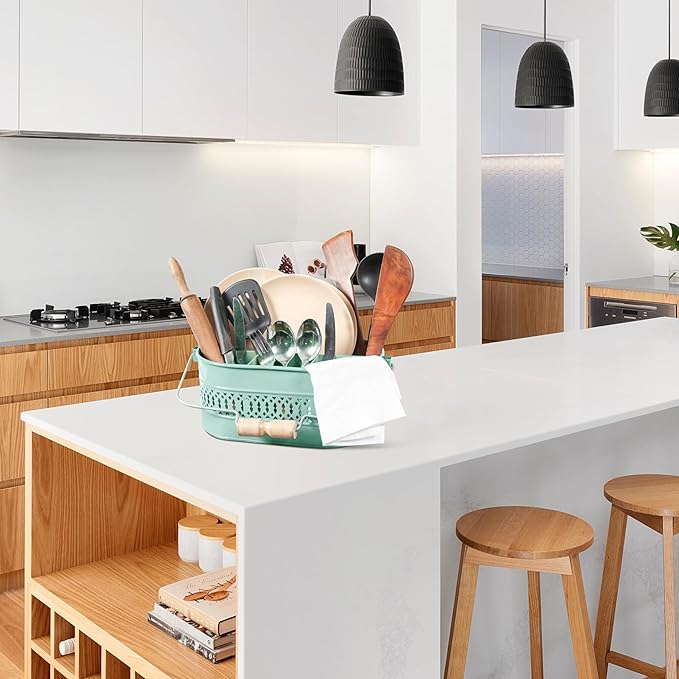 - Utensil Caddy For Kitchen Counter : A Galvanized Metal Caddy Organizer With Handlethat Is Both Functional And Stylish. It Serves As An Excellent Storage For Your Utensils While Adding A Rustic Charm To Your Kitchen. It's An Essential Kitchen Accessory.