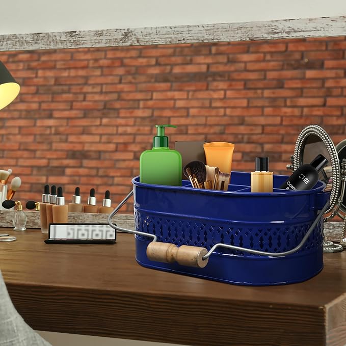 - Rustic 4-section Organizer : 13.5" X 10" X 5.5" Caddy With 3 Small Compartments & 1 Large Compartment For Versatile Storage, Featuring A Sturdy, Shabby Chic Tin Design With A Removable Handle For Easy Transport And Space-saving