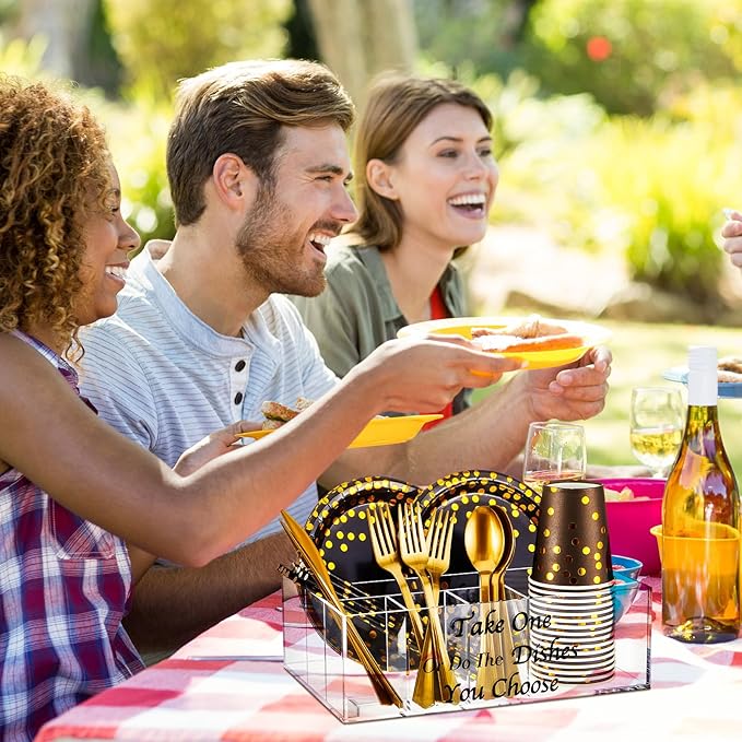 - Space Saving Solution: the picnic utensil holder caddy is an ideal space saving solution for kitchen counters; Its multiple compartments offer practical storage for your utensils, allowing you to declutter your countertop and maximize your kitchen space