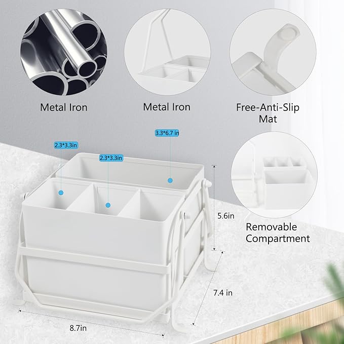 - 【Large Capacity& Multifunctional】Measures 8.9"L x 5.7"H x 8.3"W,This Utensil organizer makes it easy to organize kitchen spaces .Works well on counter, in cabinets, pantry, and morealso for camping, arts and crafts or office supplies, or even cosmetics and toiletries