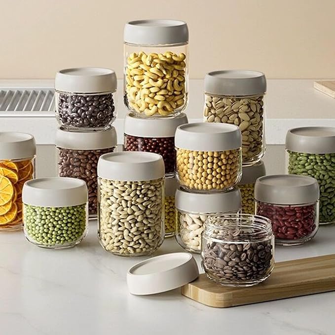 - Multi-Purpose: Great for kitchen, pantry, or household to store dry foods,nuts,coffee beans,salt, sugar,honey,jam,snacks,overnight oats condiment salad dressing sauce baby food kids snacks juice milk c.