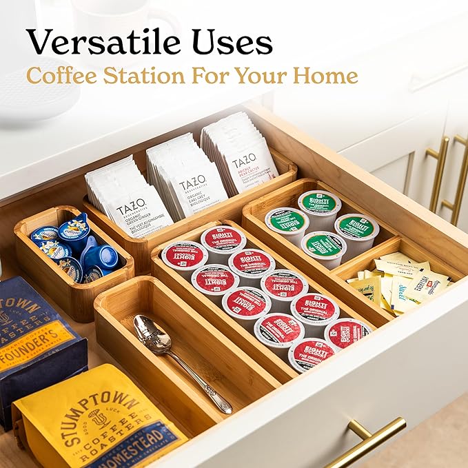 - Multi-Scene Use:SMIRLY bamboo drawer organizers and storage boxes are more than just the kitchen. Use bamboo utensil organizer to store office supplies, makeup or jewelry. The natural bamboo finish brings warmth and a premium look to any space