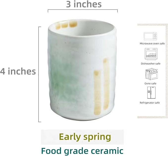 Stoneware Coffee Spoon Holder for Coffee Bar Accessories, Tea Spoon Holder Jar Teaspoon Holder Coffee Stirrers Holder Coffee Spoon Cup, Coffee Stir Stick Holder Small Utensil Holder (Spring Sprout)