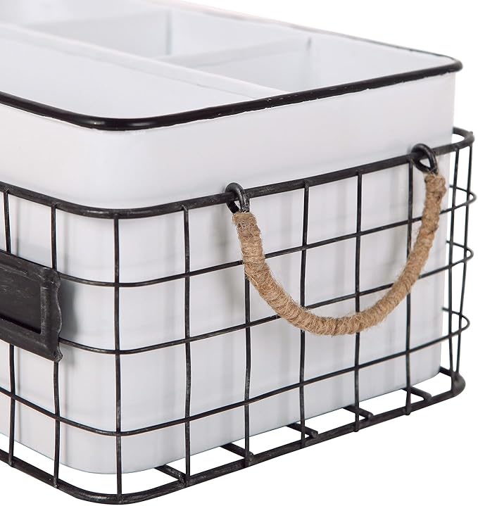 - 【2 IN 1 Design】- Unique and thoughtful design, you can easy take out the bins, and use the wire basket for additional items. This multi-purpose cutlery caddy will hold your condiments, seasonings, kitchen supplies, gadgets