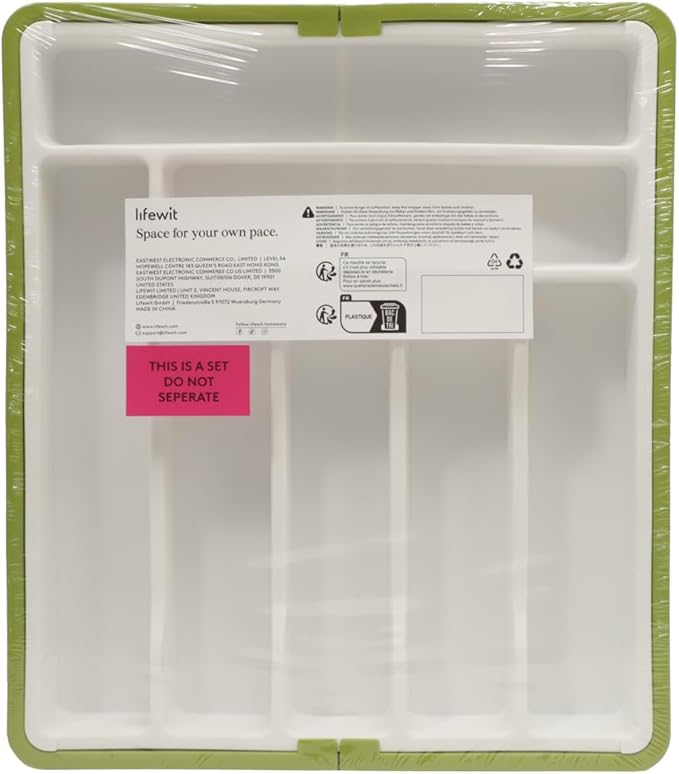 Lifewit Silverware Drawer Organizer, Expandable Utensil Organizer for Kitchen Drawers, Adjustable Cutlery and Flatware Tray, Plastic Spoons Forks Knives Holder Storage Dividers, Large, Green&White
