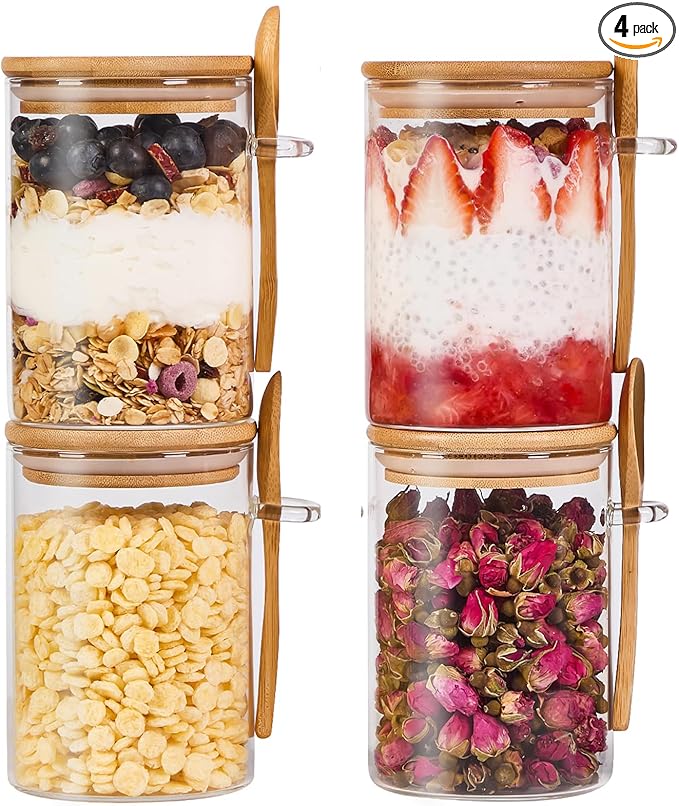 - 【Premium Quality Glass】overnight oats jars with lids from high-quality borosilicate glass, these containers are durable, resistant to cracks and thermal shock. The glass is BPA-free, ensuring the safety of your food and beverages.