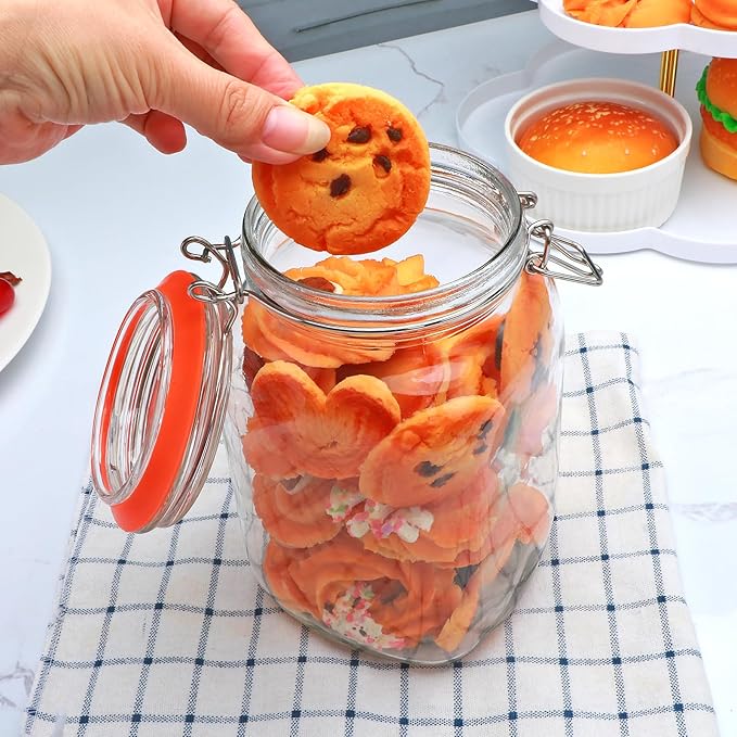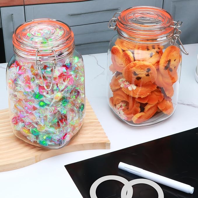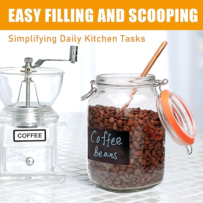 - Convenient Use-The wide mouth design is easy to access and can be operated with one hand,and the lid of the jar is designed with a metal wire clasp that can be securely closed for a wide range of items,not only functional but also easy to clean,these jars are not confined to the kitchen alone,they can also be used as stylish serving containers for a vatiety of snacks during parties,adding a touch of elegance to your table setting to elevate your dining experience.