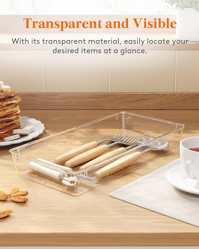 - Sturdy material: The utensil organizer is made of PET plastic, which is sturdy and strong, yet lightweight and resistant to falls. The transparent design allows you to quickly locate the items you need.
