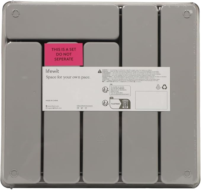 Lifewit Silverware Organizer with Lid, Covered Utensil Tray for Kitchen Drawer and Countertop, Plastic Cutlery and Flatware Storage Box for Spoons Forks Knives Holder Case, 6 Compartments, Gray