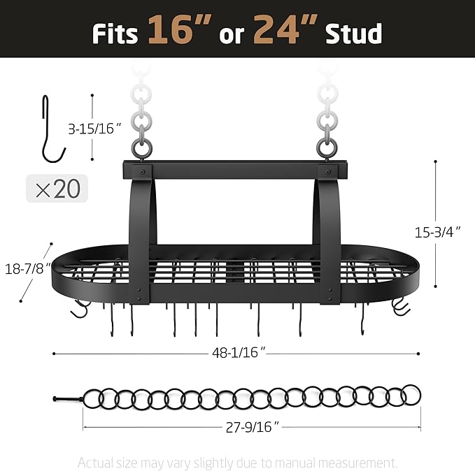 - [16" and 24" Stud Installation] The 20 included hooks offer even more kitchen-organized storage for cast iron and skillet, suitable for most home and kitchen.