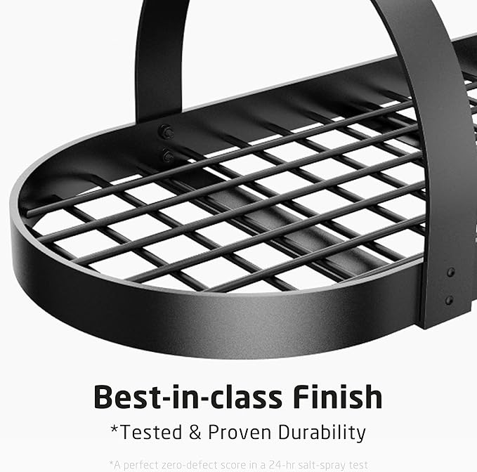 - [Matte Black Elegant Finish] Exudes a subdued elegance, its versatility harmonizes effortlessly with various kitchen aesthetics, whether modern, rustic, or minimalist. The pot rack passes abrasive test, high abrasion and scratch resistant.