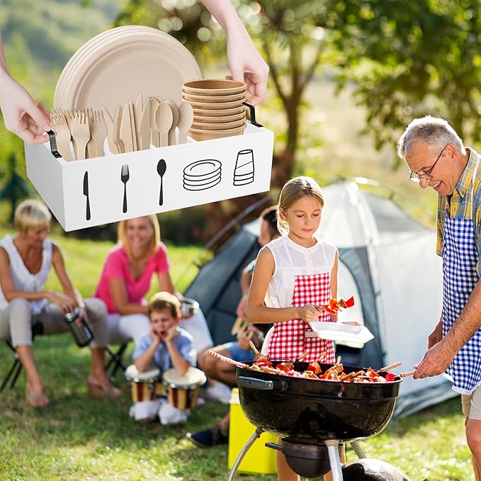 - 【Space Saving】- Our utensil caddy for parties and paper plate holder is not only great for holding flatware, it can also be used for organizing small objects such as office supplies, tools, and more. Perfect for home and RV use. our kitchen wood utensil holder organizer store your utensils in one place, saving you space and time!