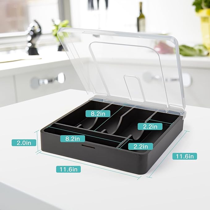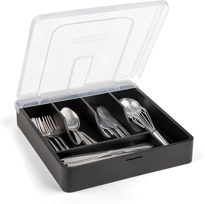 - 3. Heavy-Duty Stability:Sturdy dividers and base won’t warp. Solid construction keeps knives from sliding through dividers. Curved grooves make it easy to reach the knives & forks.