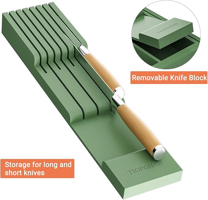 - 【With Detachable Knife Rack】: This utensil organizer can hold up to 7 knives. Safely store your knives and other sharp items on the organizer, providing a safer and more convenient knife storage solution for your kitchen. The knife rack is also detachable, meaning you can easily remove it, clean it, and re-install it as needed