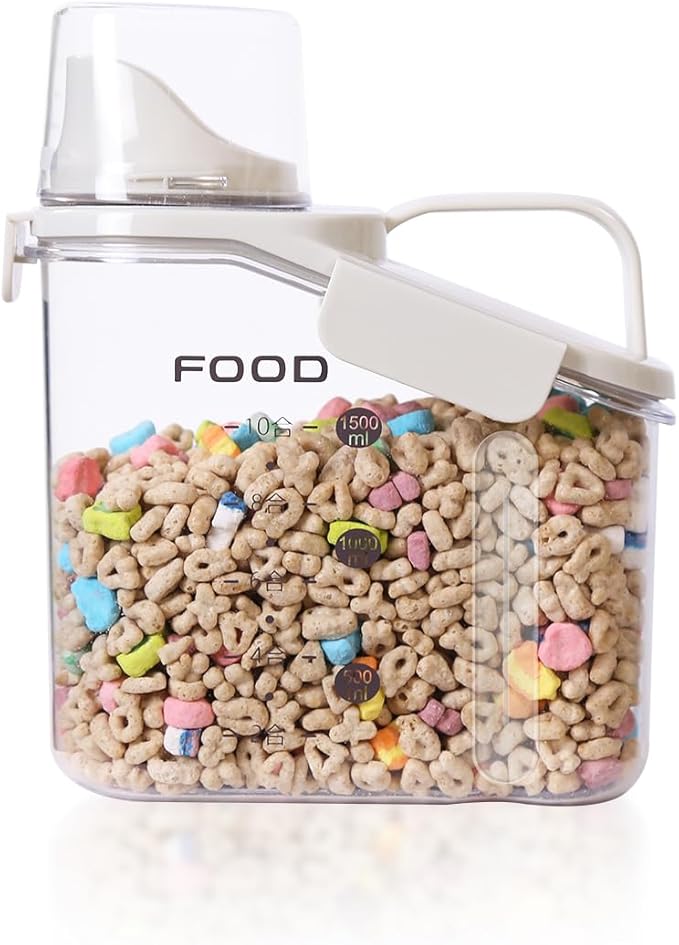 1 Piece Cereal Storage Container, 51oz/1.5L Compact Dry Food Storage Containers with Pouring Spout Measuring Cup for for Rice Nuts Beans Pet Food Snacks Candies, BPA Free, 1 PC