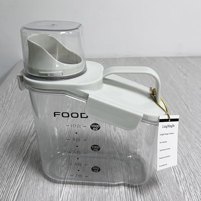 - 【Effortless Pouring】 LANGMINGDE Rice storage container with measuring cup and pour spout, making every pouring neat and clean. Upgrade your kitchen organization with this sleek and functional solution.