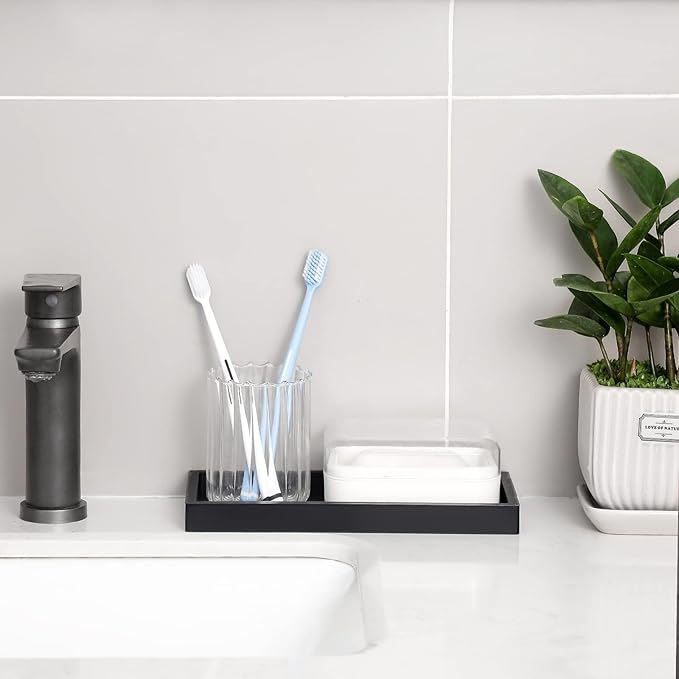 - EASY CLEANING: This bathroom tray is easy to clean, just wipe it down or put it in the dishwasher. Also it is waterproof, so you can place it in wet or potentially dripping areas.