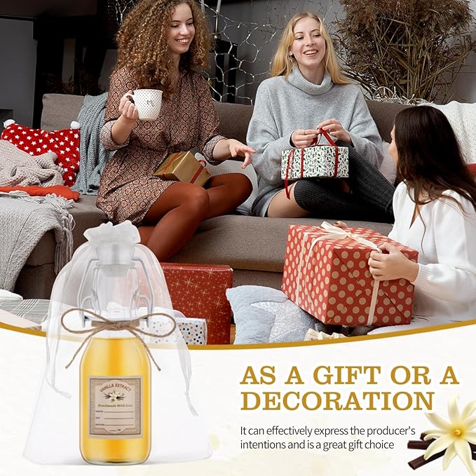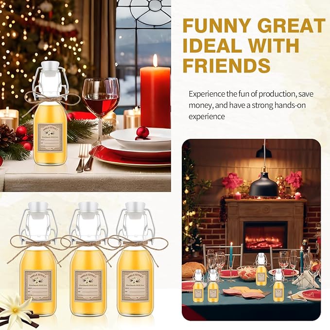 - Perfect Gift Combinations:The package include 20pcs swing top glass bottles for vanilla extract homemade,24piece labels,20 small gift bags,4 brushes,4 funnels,and one roll of 15 meters of red cotton rope,i think it can be the best gift combination and enough for your family daily use and replacement