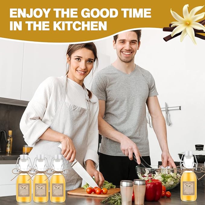 - Reliable Material:Our vanilla extract bottles are made of high quality durable and clear glass,it allows you to clearly see what's inside the bottle,and the leak proof swing top is mainly crafted from sturdy metal,it won’t leak and keep fresh, i think it can serve you for a long time