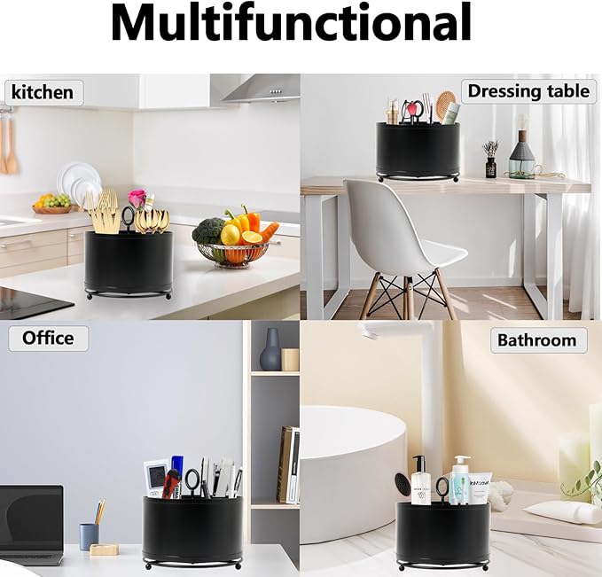 - 【Convenizet Efficient organization】 :This rotating utensil holder swivels 360 degrees in both directions, black silverware organizer has 4 compartments for knives, forks, spoons, napkins keeping all kitchen utensil within easy reach on the countertop and ensuring that everything stays in place.