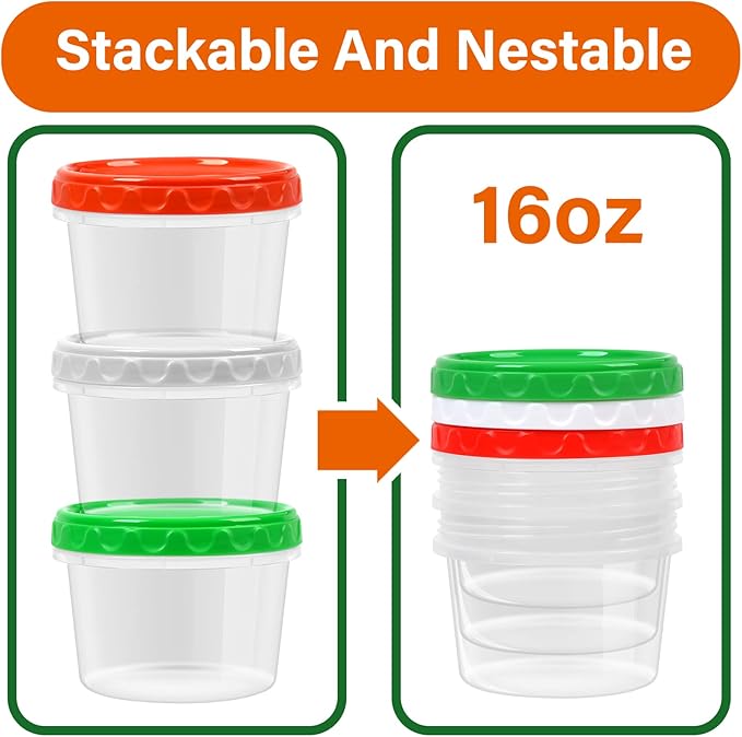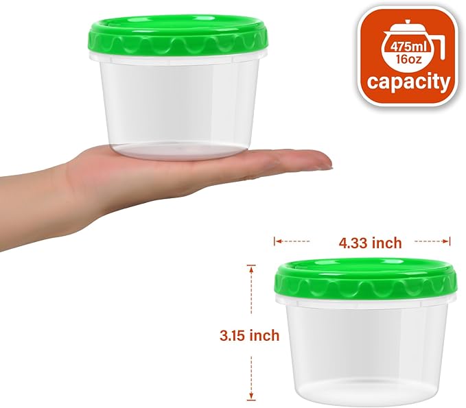 - Versatile and Convenient: Our Reusable 16oz Plastic Containers with Lids are the perfect solution for all your food storage needs. Whether you're meal prepping, portioning out soups and jams, or packing snacks and yogurt, these containers have got you covered.