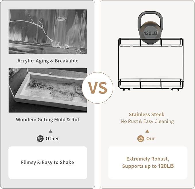 - EASY TO CLEAN: With a sturdy stainless steel frame that can prevent corrosion in wet places and removable ceramic trays with a luxurious marble pattern, this dresser top stand is both functional and easy to clean.