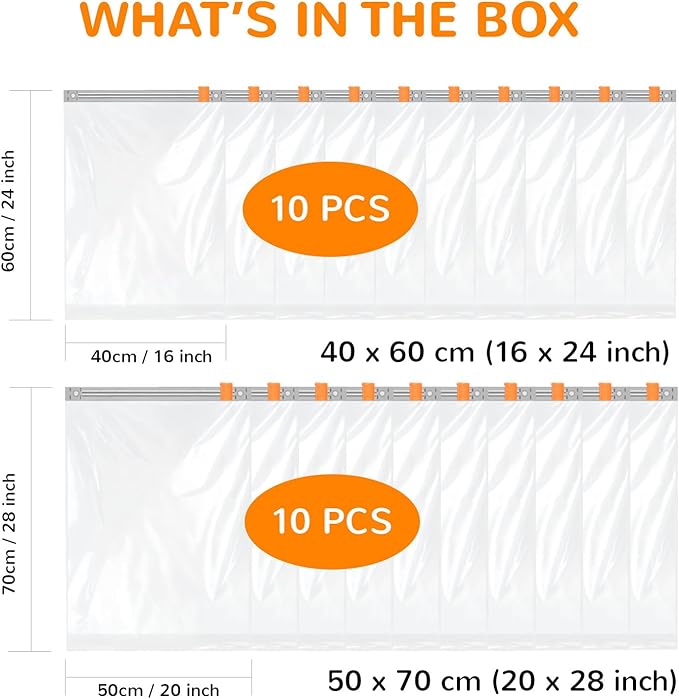 - INCLUDING - COMPRESSION ROLL BAGS ONLY, 10PCS MEDIUM SIZE (40 × 60cm / 16 × 24 inch), AND 10PCS LARGE SIZE (50 × 70cm / 20 × 28 inch)