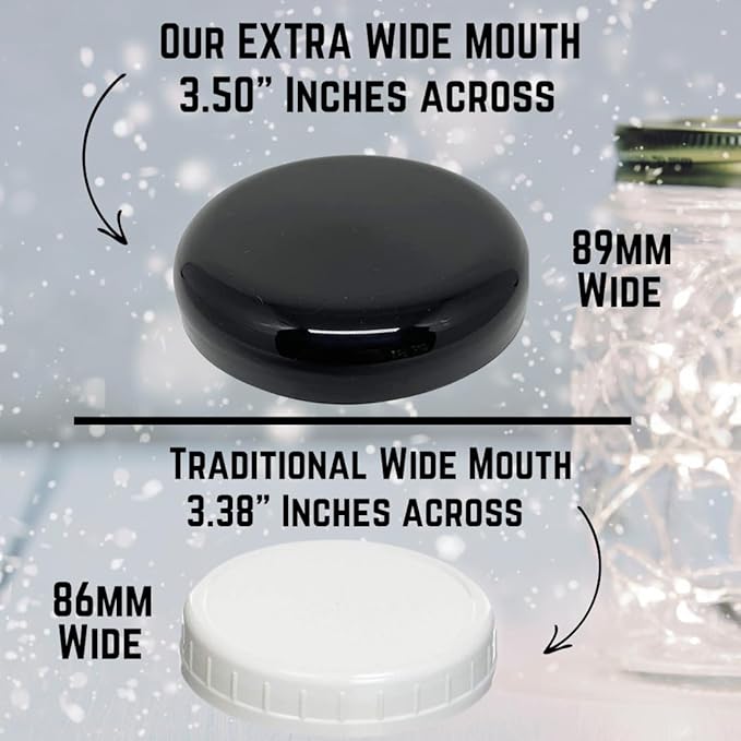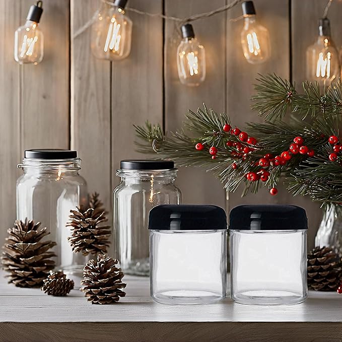 JARMING COLLECTIONS Mason Jars 16 oz Glass Extra Wide Mouth Pint Storage Jars with Lids - BPA Free Plastic Storage Lids - Made in USA - Pint Glass Jars 16 oz with Lids, RYAN16OZBLK