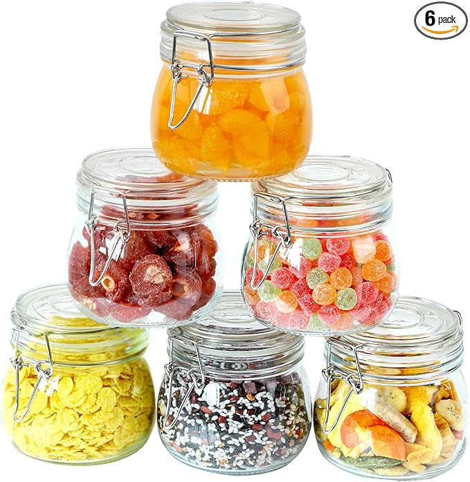 - AFTER-SALES SERVICE : This set includes six 16 oz storage jars, it will perfect fit your kitchen cabinet and fridge shelves. Please feel free to contact us if you have any problems with the items, and we will reply you within 24 hours and provide a satisfactory solution.