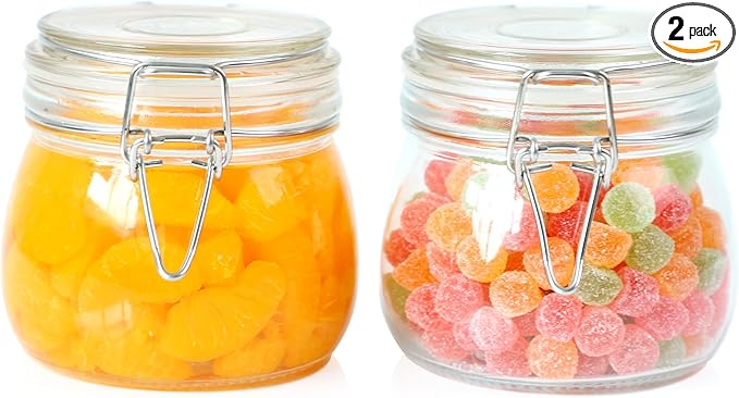 - AIRTIGHT & LEAKPROOF FOOD STORAGE JAR : The lids of the glass food container are airtight design, with food grade silicone seal gasket, will ensure an airtight seal leak-proof and prevents the entry of insect, keep your food dry fresh and preserve the flavor of food for a long time.The stainless steel secure buckle is easy to open and close, will preduce the mess when using the airtight storage jar.