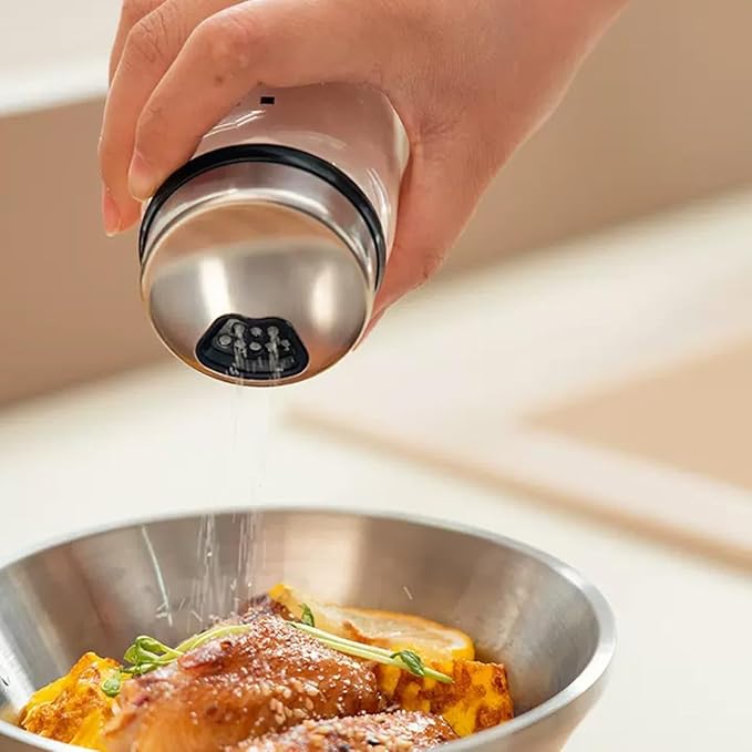 - The stainless steel & 18/8 stainless steel & plastic adjustable rotating lid with three sizes' outlet holes for pouring fine, medium, and coarse spices. Perfect for maintaining the freshness of them and keeping dust