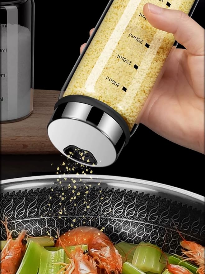 - 300ML capacity glass bottle with a wide opening, easily refilled and offers ample space for your favorite seasoning or spice, resulting in less frequent refills.Complete with a circle of silicone pad on the bottom, for slip resistant
