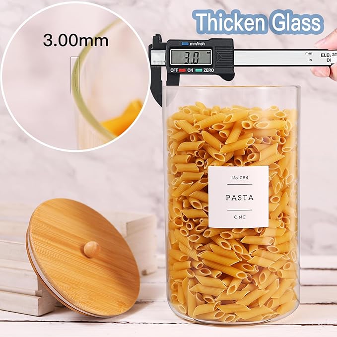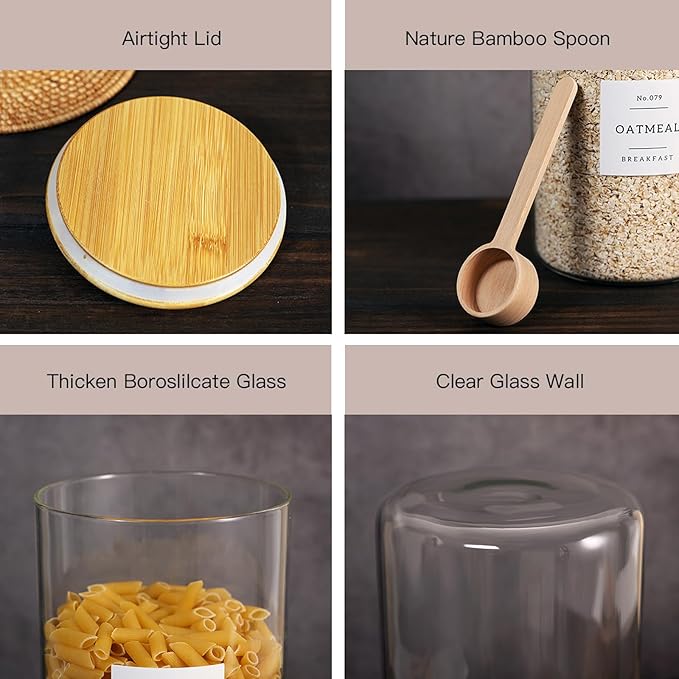- HIGHLY GLASS: The storage jars with airtight lids are made of high-quality borosilicate glass and BPA free silicon which withstand temperature 0℉ to 400℉, you can put this airtight food canister in the pantry, kitchen corner or fridge.
